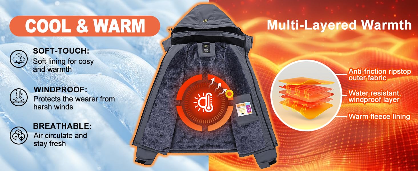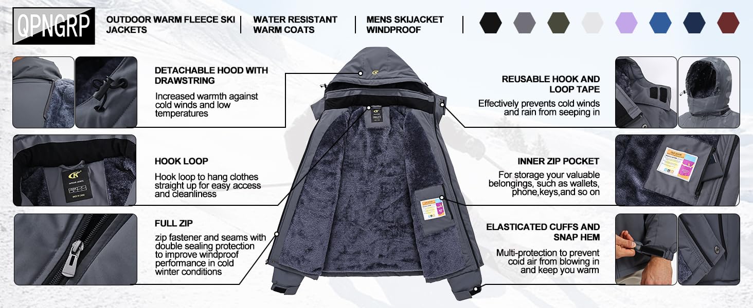المزايا: غطاء رأس عازل قابل للإزالة وأساور أكمام مع حلقة خطاف